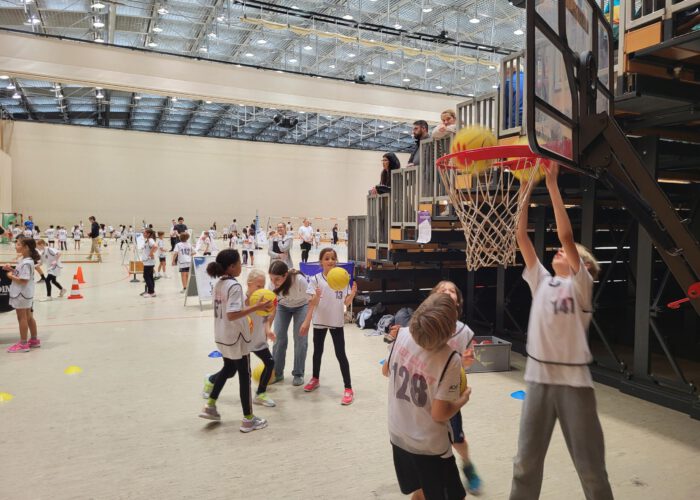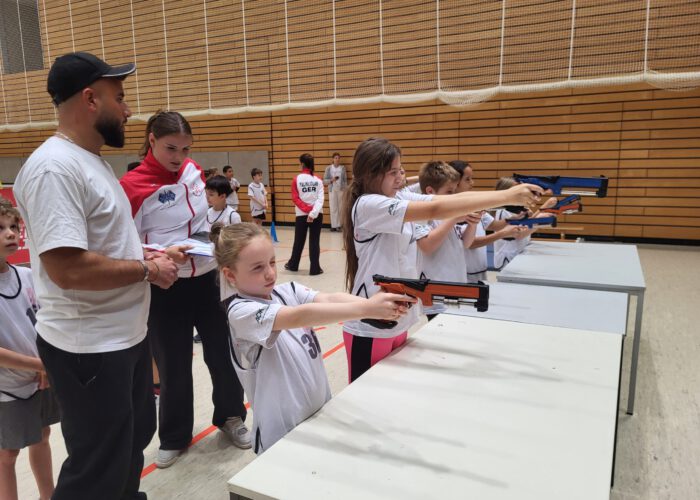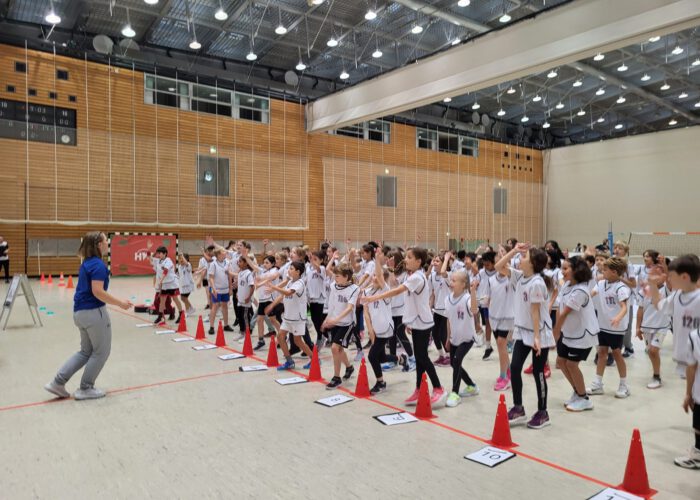 Ein besonderes Highlight des Vormittags war der Besuch von Svenja Brunckhorst, frischgebackene 3×3‑Basketball-Olympiasiegerin von Paris 2024. Sie war vor Ort, um für den Sport und die Olympischen Spiele zu werben, berichtete von ihren Erfahrungen und begeisterte mit ihrer offenen Art und motivierenden Botschaft: „Habt Spaß! Ich habe heute ganz viele freudige Gesichter gesehen. Wenn ihr also eine Sportart für euch findet, die euch Spaß macht, bleibt dran!“