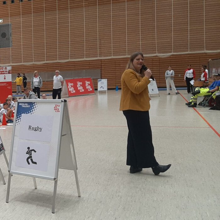 Darüber hinaus freuten wir uns über den Besuch von Frau Dr. Carola Schmitt-Schmelz, stellvertretende Bezirksbürgermeisterin von Charlottenburg-Wilmersdorf. Sie richtete einige Worte an die anwesenden Kinder und Eltern, in der sie die Bedeutung von Bewegung, Zusammenhalt und Chancengleichheit im Sport betonte und allen Beteiligten für ihr Engagement dankte.
