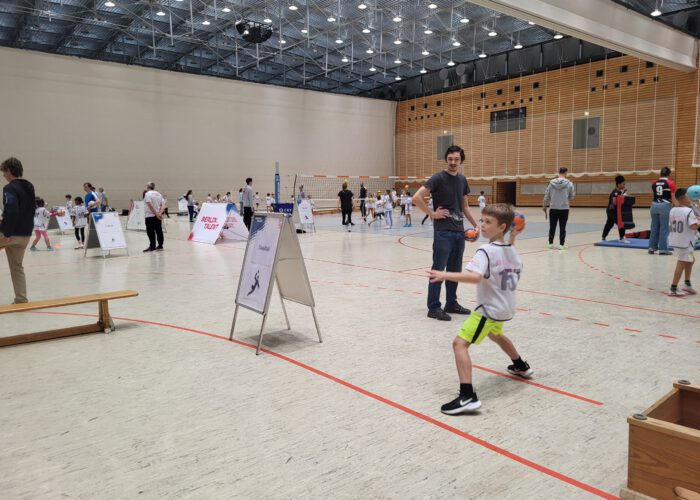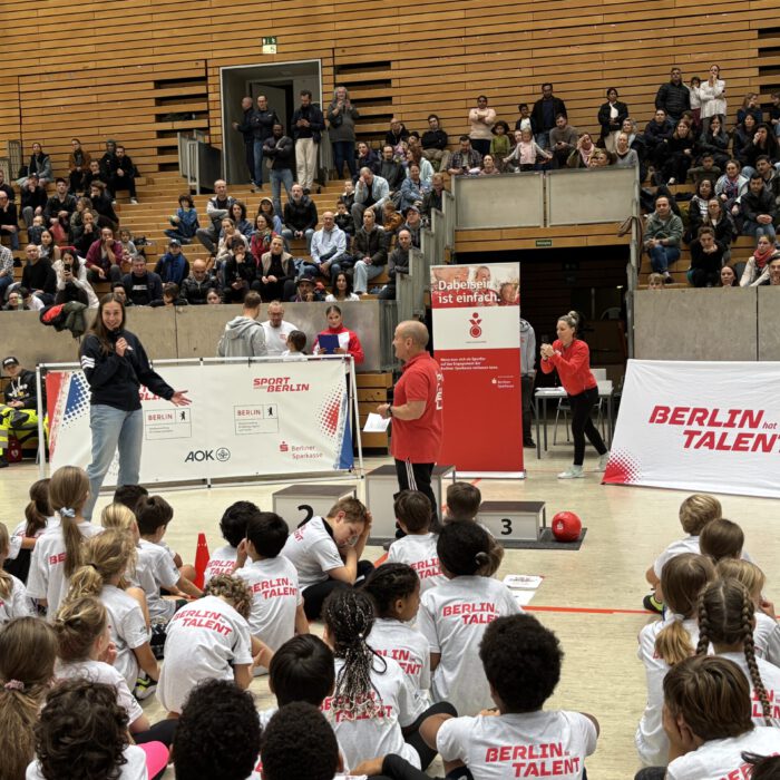Am Vormittag nahmen rund 124 Kinder aus Charlottenburg-Wilmersdorf an der Talentiade teil und probierten sich in verschiedenen Sportarten aus: Basketball, Handball, Hockey, Lacrosse, Leichtathletik, Moderner Fünfkampf, Prellball, Rugby und Volleyball boten ein breites Spektrum an Bewegung und Spaß.